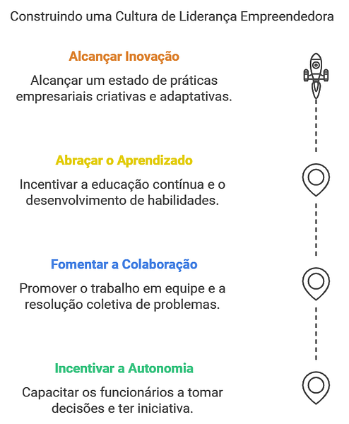 Para desenvolver uma cultura de liderança empreendedora, é necessário adotar algumas estratégias práticas. Abaixo, listamos os principais passos para promover essa mudança cultural.