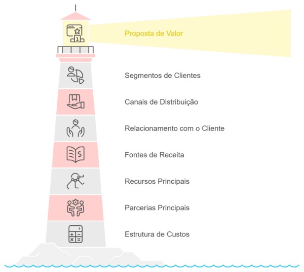 Para estruturar um modelo de negócios eficaz, é essencial entender seus principais componentes. A seguir, destacamos os blocos essenciais: