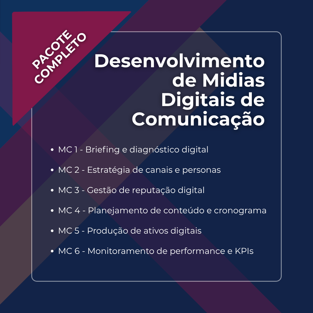A consultoria em Mídias Digitais visa a aproximação com os clientes, fortalecimento da audiência do negócio e conversão de seguidores em compradores. A Consultoria contribui, assim, para uma melhor utilização de ferramentas para melhorar a visibilidade da empresa. Nosso objetivo é transformar sua presença online, garantindo que sua marca se destaque e converta seguidores em compradores.